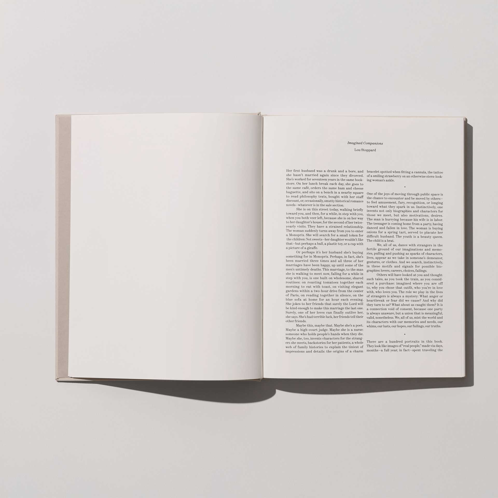 There are a hundred portraits in this book. They look like images of “real people,” made via days, months—a full year, in fact—spent traveling the streets of Paris. Ned Rogers began the project with the idea of making portraits of memories and impressions:to create, in image, a version of the characters and individuals that feel familiar to him, from people he has come across throughout the city. The project nods to the uniquely French history of the flâneur: wandering, observing, judging, philosophizing. All those historical judgments were, of course, laced with bias. How we treat or judge others is molded by our perspective, which is shaped, of course, by how others have treated or judged us. Lives stack on lives, experiences on experiences, and, in the flâneur’s tales, hunches and caricatures are put to record: The world is asked to stand still and control is sought over other people’s stories and images, over the madness of chance.